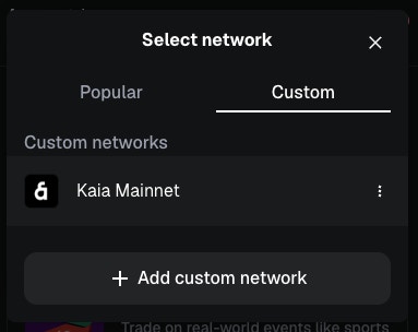 Select Kaia as the network