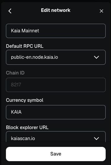 Enter Kaia network information