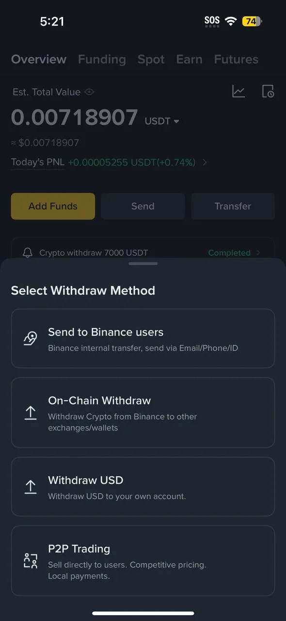Binance withdrawal flow (app)