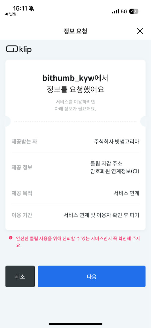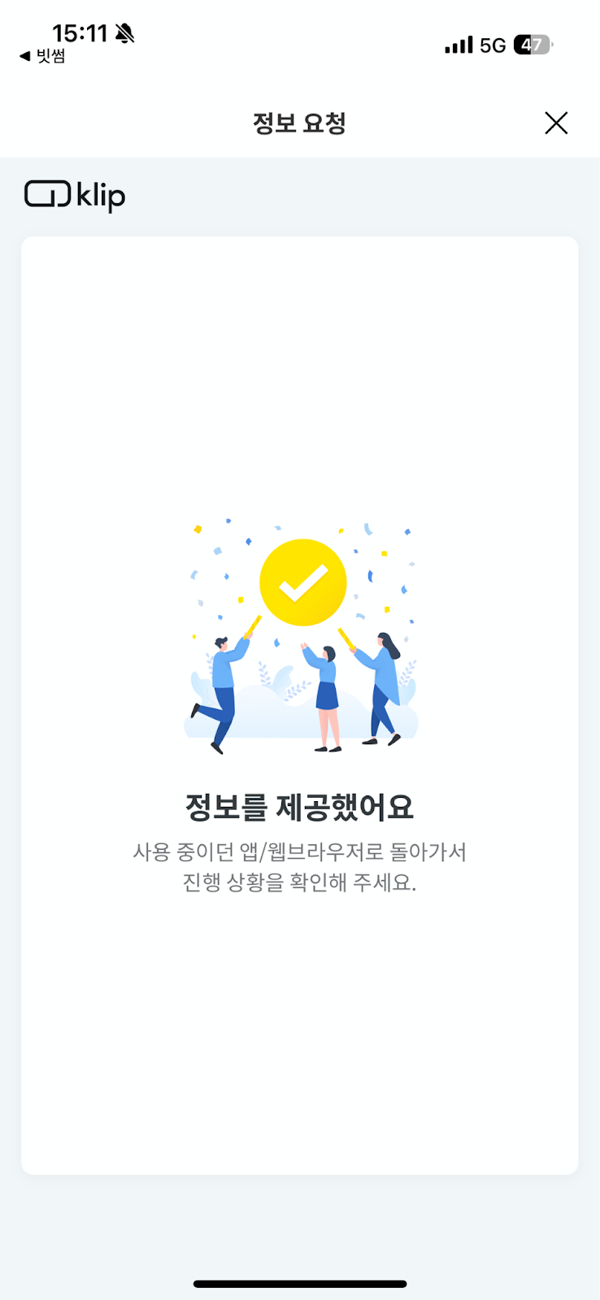 - Tap Connect -> switch to the KakaoTalk in-app Klip info request page