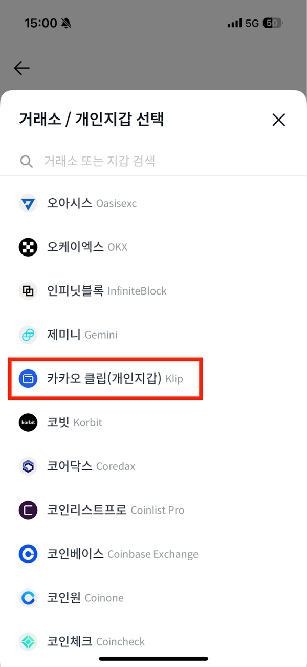 Select Klip, the wallet type supported by Bithumb.